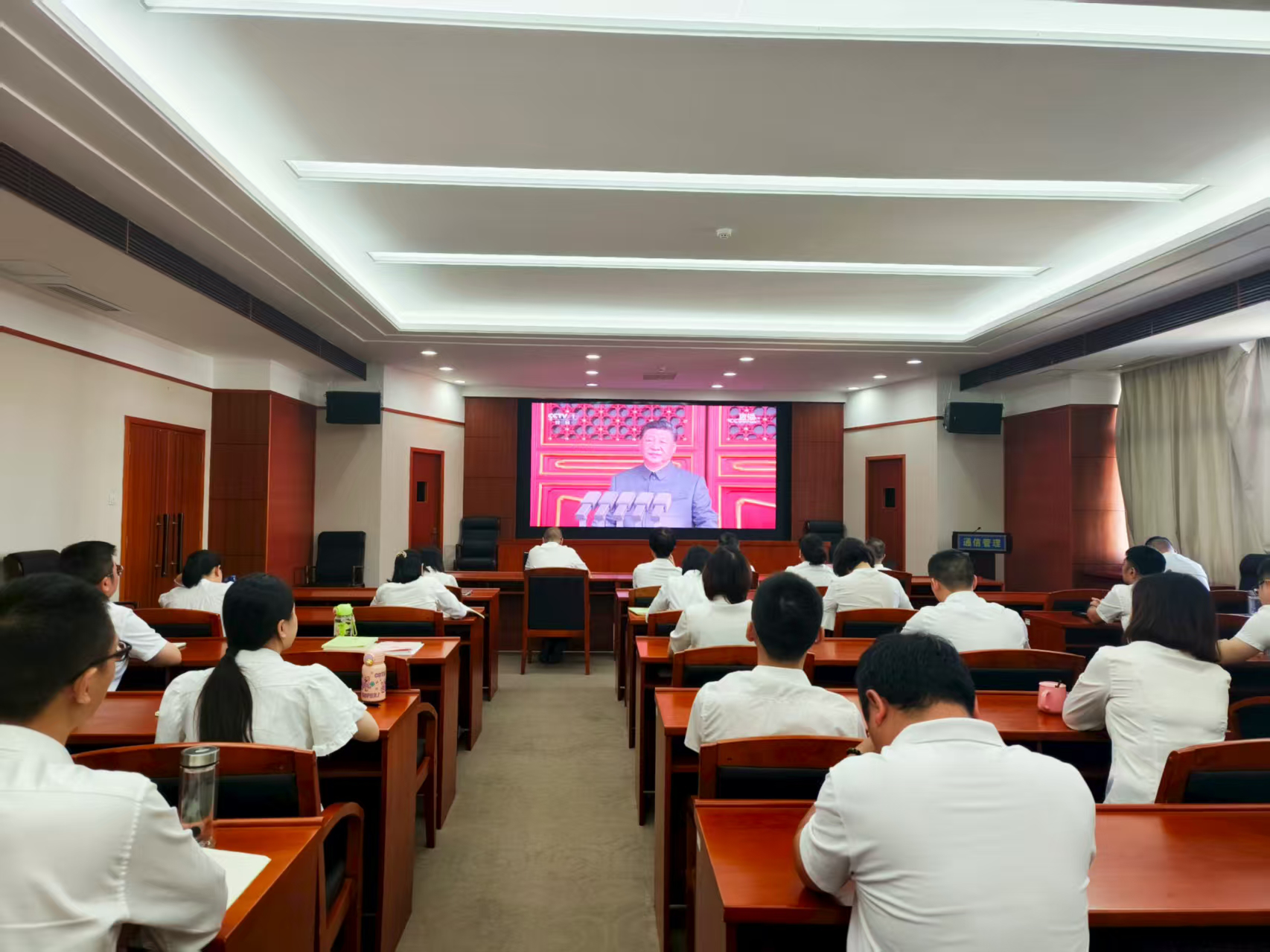 观看现场气氛庄重热烈,全体党员干部职工认真聆听习近平总书记在纪念大会上的重要讲话,全神贯注观看阅兵盛况。当空中护旗梯队多型直升机组成编队护卫党旗、国旗、军旗飞过天安门上空时,会场响起阵阵掌声;当徒步方队昂首阔步接受检阅时,大家为抗战老部队展现的优良作风和新型军事力量结构布局深深感染;当装备方队展示国产现役主战装备时,众人为我军制胜现代战争的强大能力倍感自豪。特别是众多首次亮相的新型武器装备,展现了我军现代化建设的新成就和新域新质作战力量的提升,彰显了捍卫国家主权、安全、发展利益的坚强能力。