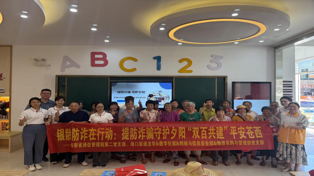 为守护辖区老年人的财产安全与身心健康。近日,中共海南省通信管理局第二党支部联合中共海南联通省公司下辖党支部,前往海口龙华区苍西社区开展主题为“银龄防诈在行动:提防诈骗守护夕阳‘双百共建’平安苍西”防诈宣传活动。