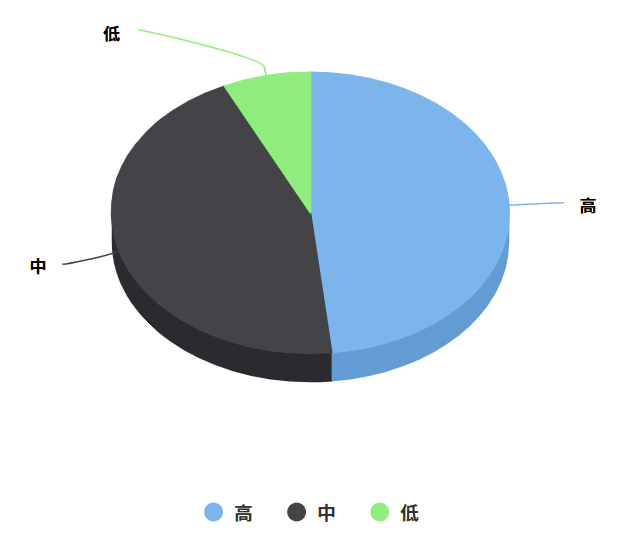从漏洞严重程度来分类,其中高危漏洞占比为48.3%,中危漏洞占比为44.6%,低危漏洞占比为7.1%,具体情况如图7所示。